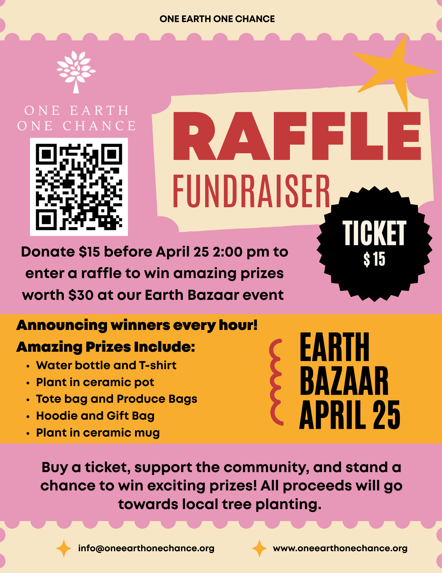 We invite participants to get inspired to make conscious choices, adopt sustainable practices in your daily lives through practical and engaging experiences, and pledge their commitment to caring for our planet. Any donations collected are in support of One Earth One Chance’ tree-planting initiatives.
